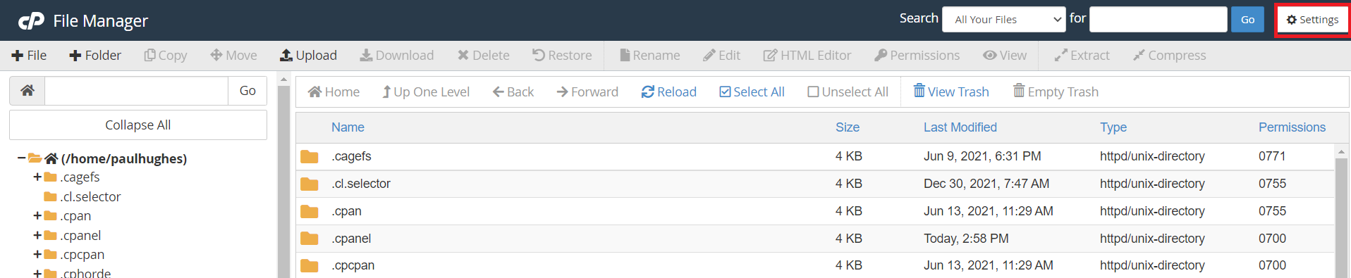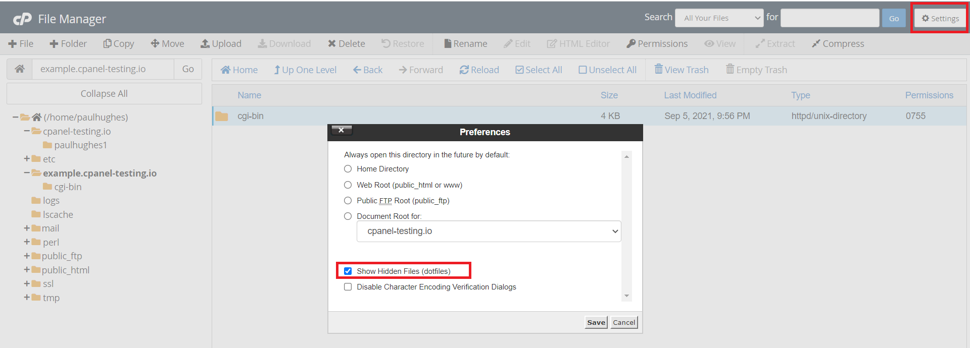 After selecting Save button, all the hidden files will be displayed in File Manager.